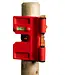 Een sterke waterpas met elastiek. Hiermee zet je palen recht en op de juiste diepte in de grond. Door het elastiek blijft de waterpas stevig om de paal zitten.